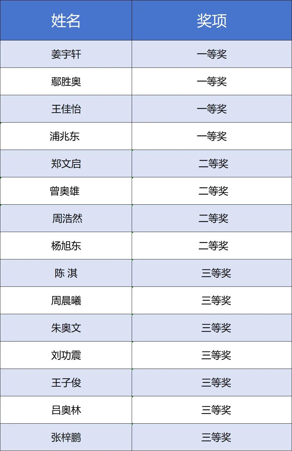 在此次高水平的角逐中,另有11名同学分获二、三等奖,他们不畏强手,披荆斩棘,同样值得喝彩!