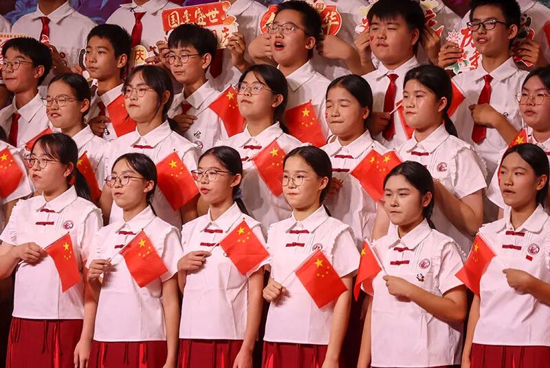 为庆祝中华人民共和国成立76周年及抗日战争胜利80周年,9月29日晚,我校八年级全体师生齐聚华灯璀璨的学术报告厅,举行以“礼赞盛世,强国有我”为主题的红歌合唱比赛,用激昂的歌声奏响献给祖国的盛世华章。