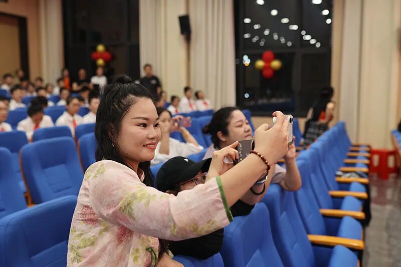家长们则多了几分克制,有的举着手机,镜头牢牢锁定舞台,生怕错过一个镜头;有的随节拍轻扣掌心,眼睛却紧紧盯着舞台,当自家孩子出现在舞台的瞬间,随即送上那盛满骄傲与鼓励的微笑。那目光,那微笑织成了一张温柔的网,默默托举着舞台上的光芒。