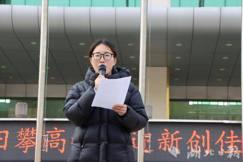 她以活动主题为题,回顾了高一年级同学从初入校园的适应到如今的奋进历程,感谢那些在课业压力与独立生活中咬牙坚持的日夜。“‘辞旧’不是遗忘过去,而是沉淀经验、汲取力量;‘迎新’也不只是迎接新年,更是以更昂扬的姿态拥抱未来、创造佳绩。”她在发言中分享道,并呼吁同学们将过往的积淀化为前行的底气,以严谨的态度和科学的方法主动学习,在新征程中攀登知识、能力与人格的高峰。