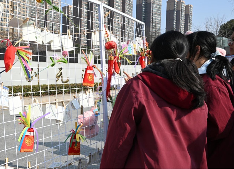福袋抽取区前,同学们凭直觉选号抽签。“你值得被爱”“今天的你也很努力”……彩色纸签上的文字像一颗颗小太阳,被小心折好放进书包。这枚“心灵小锦囊”,成了他们随身携带的勇气来源。