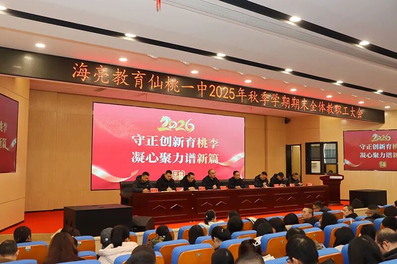 初心在,启新程,步履坚。本次期末教职工大会,既是对一学期耕耘的全面复盘,更是一次凝聚共识、点燃激情的出征号角。回首2025,仙桃一中全体教职工秉持“除了一流,别无选择”的信念砥砺深耕,用汗水浇灌桃李芬芳,用实干铺就育人之路;展望2026,一中人将继续怀揣教育初心,以“关爱每个学生”“因材施教,让每个生命出彩”为使命担当,以更昂扬的斗志破局攻坚,以更务实的作风勇攀质量高峰,书写教育崭新篇章!