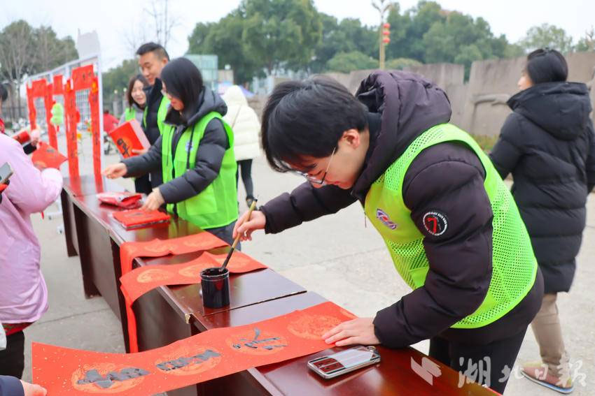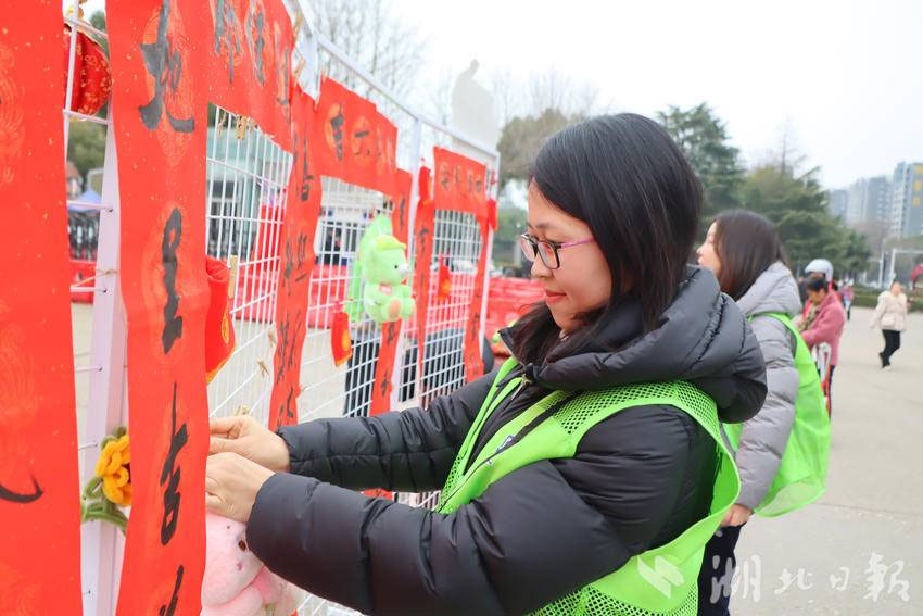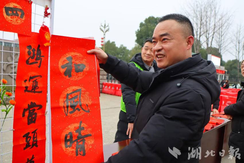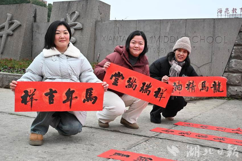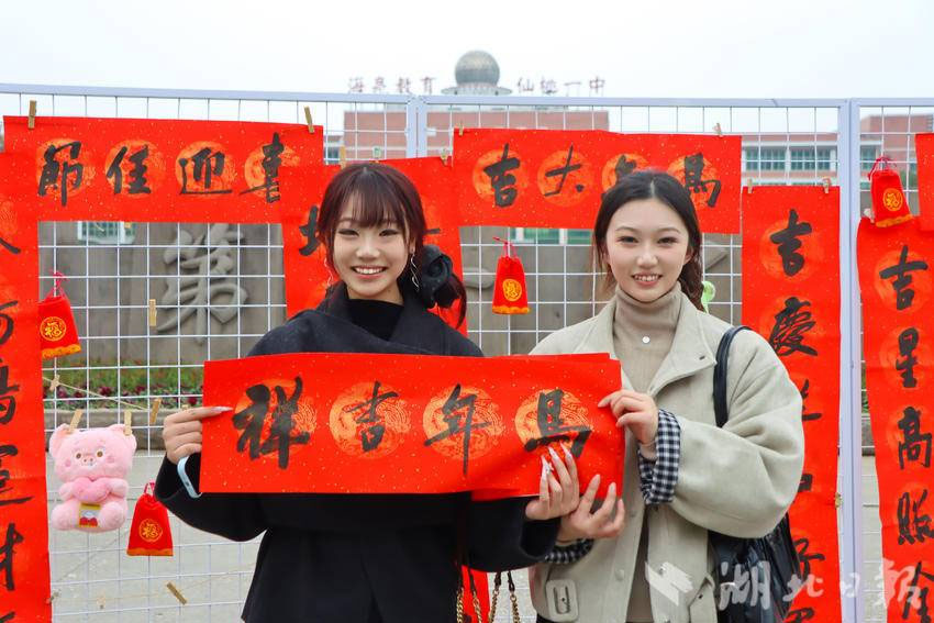 据仙桃一中高中部校长陈登章介绍,此次赠春联活动是学校“传统文化进校园”系列举措之一。朱旭老师提前两周利用业余时间书写了大量春联,既有春节迎新经典吉祥语,也有结合校园生活的原创内容。“通过书法艺术传递新年祝福,既能让家长感受到学校的人文关怀,也能让孩子们在潜移默化中亲近传统文化。”朱旭老师表示,笔墨间的温度,正是家校共育最生动的纽带。