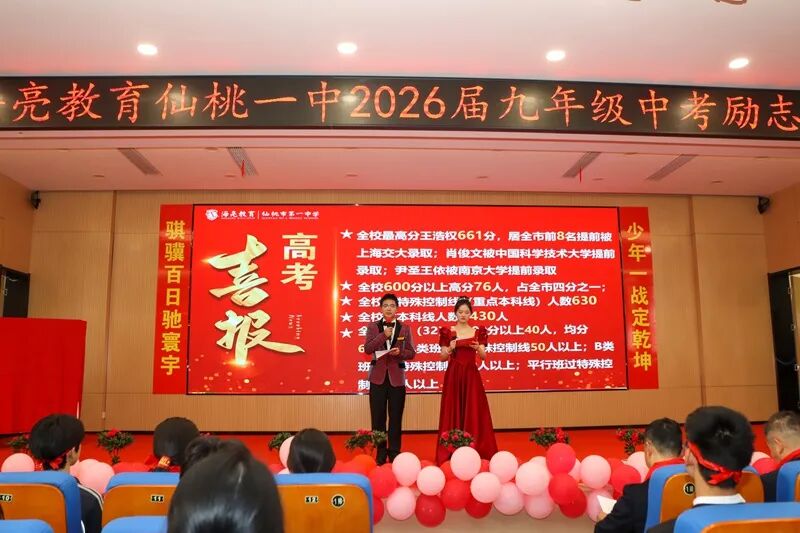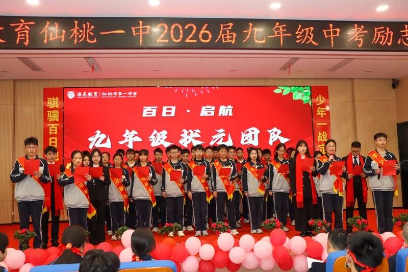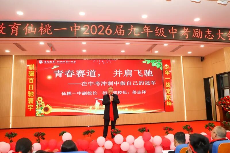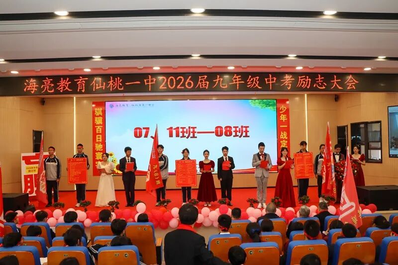 玉兰凝香吐蕊,紫薇抽芽破枝,三月的风裹着春的蓬勃,拂过仙桃一中的菁菁校园。3月12日上午,学校学术报告厅内彩带飞扬、旌旗猎猎,九年级学子们身姿挺拔、目光如炬,2026届中考励志大会在此燃情启幕,为百日冲刺吹响最嘹亮的冲锋号角。