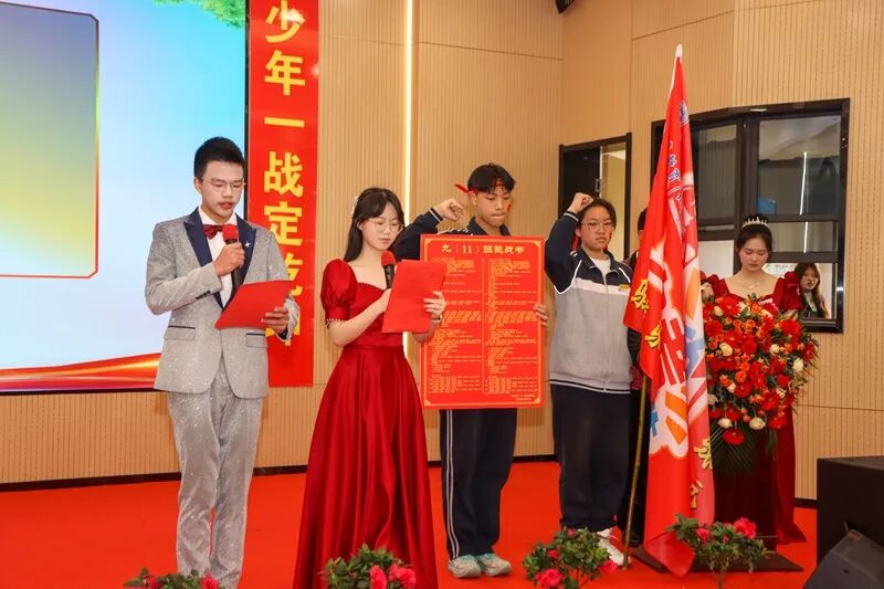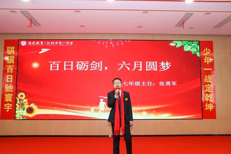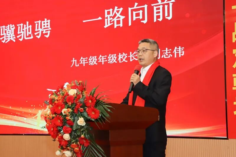 “请允许我代表学校,向始终与我们并肩同行的九年级全体家长,表达最衷心的感谢!向日夜坚守、倾情付出的九年级全体教师,致以最崇高的敬意!而最热烈的掌声,要送给在座的每一位同学——你们才是今天的主角,是即将出征的勇士,是注定要闪耀六月的星辰!”