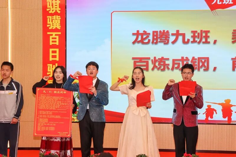 布一百天为局,许一盘青春如棋,落子无悔;谱一百天为曲,奏一章赤子逐梦,无问西东;握一百天为拳,搏一记点燃闪电,声震人间;垒一百天为梯,望一眼前途浩荡,山高水长……
