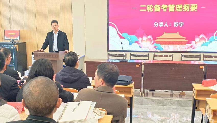 会上,仙桃一中副校长彭宇以“二轮备考管理纲要”为主题,阐述了高三复习备考的整体思路。他点明二轮复习的核心价值:“这是学生学习实现从量变到质变的关键阶段,是教师助力学生提分的攻坚阶段,也是学校教学质量管理的重点阶段”,引发在场教师的普遍认同。随后,他分享了高考备考先进学校魏县一中的经验,从备考研究、课堂教学、高效训练、精准辅导、家校协作等维度,系统解读了二轮备考管理的全流程。
