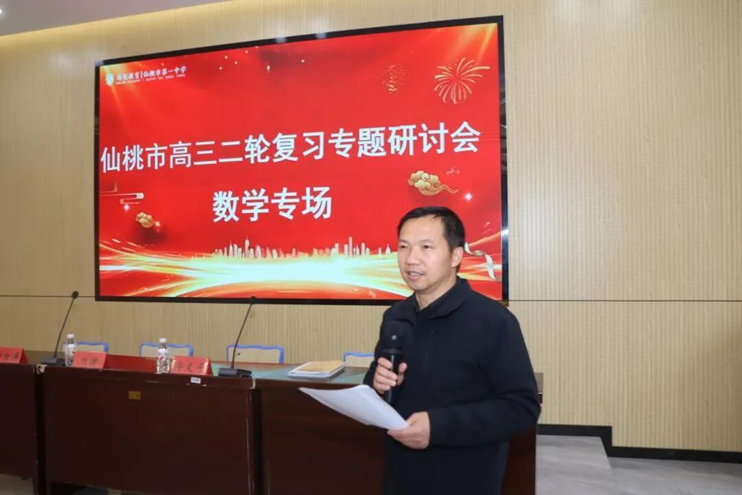 为优化高三后期复习策略,提升备考的科学性与实效性,3月30日,仙桃市高三数学、生物学科二轮备考研讨会在仙桃一中举行。会议分数学、生物两个专场进行,数学专场由仙桃一中副校长许义平主持,生物专场由仙桃一中教科室副主任刘红升主持,全市各高中学校高三备课组长及部分青年骨干教师参与了本次活动。