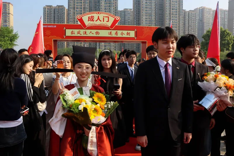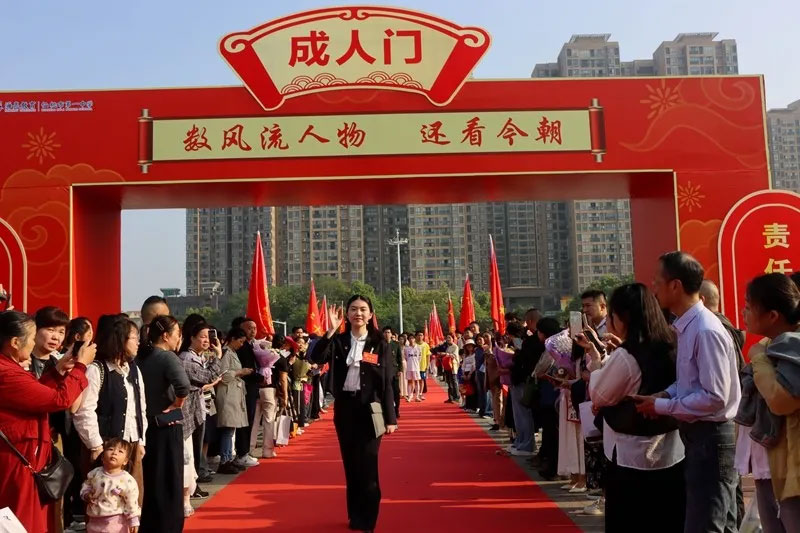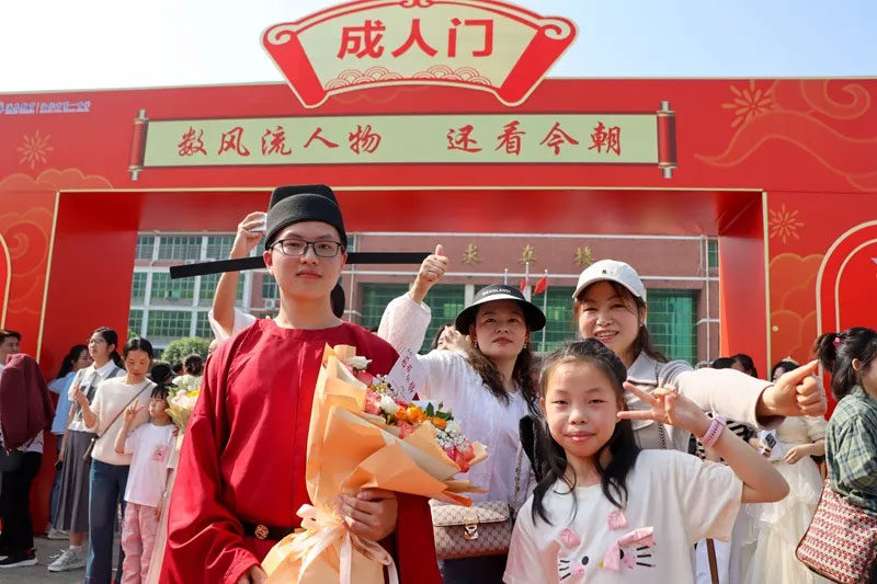 “衣冠正,则言行正;言行正,则心术正。”在古朴的礼仪中,家长们为孩子整理衣领、系好领带、戴好项链,用指尖的温度传递着对成年的祝福。