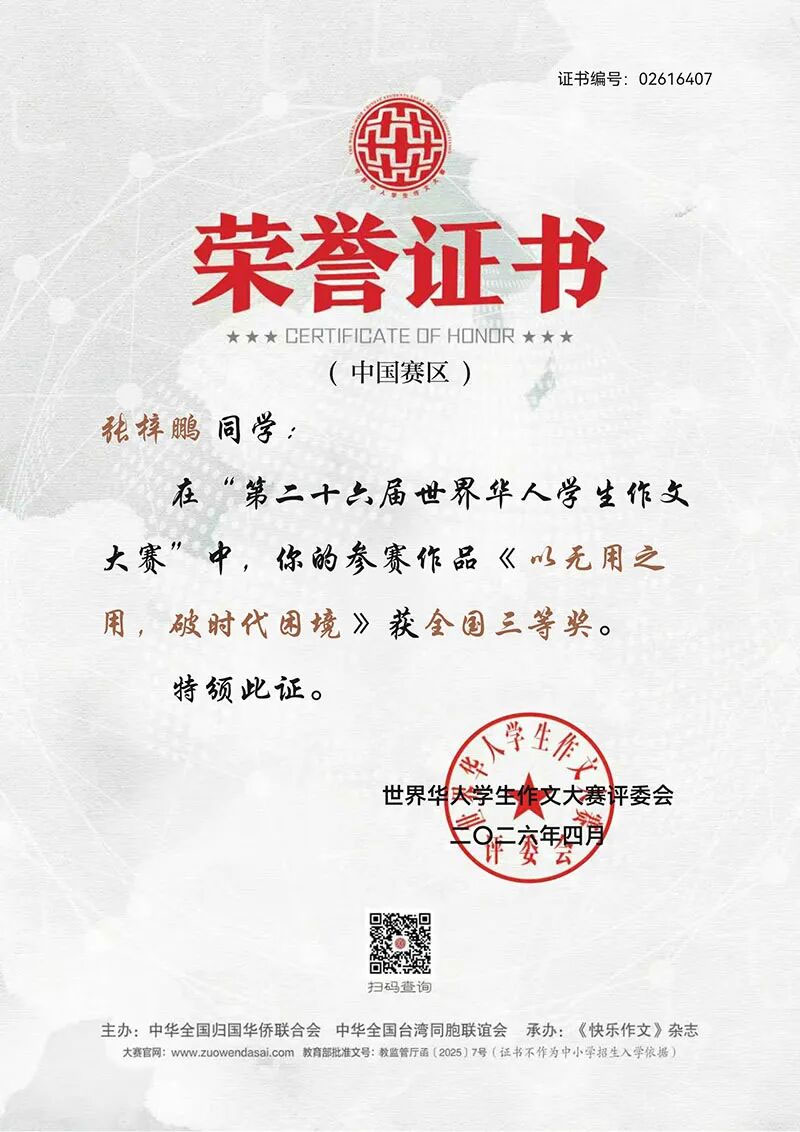 大赛主题兼具深度与难度,对学生的写作素养、创新思维和文化认知提出了极高要求。我校学子能在激烈角逐中脱颖而出,实属不易。