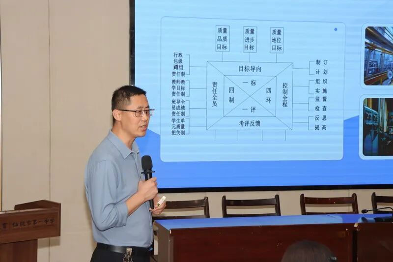 4月8日下午,仙桃一中副校长彭宇主持一流质量体系建设研讨,强调学校质量建设须以科学质量观为引领,依托目标、管理、操作体系协同推进。