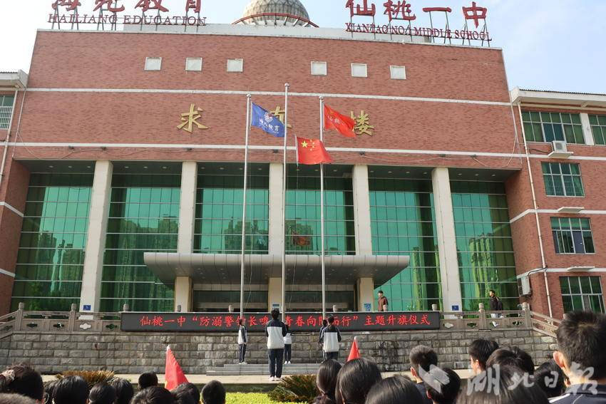 4月13日上午,仙桃一中七年级、八年级全体师生齐聚求真广场,举行“防溺警钟长鸣,青春向阳而行”主题升旗仪式。