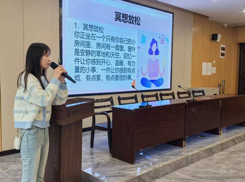 第一节课,刘延婷老师引领学生步入“情绪编织”的静谧世界。在舒缓轻柔的氛围中,学生们闭目冥想,通过温柔的引导语卸下外界纷扰,直面内心深处的情绪波澜。