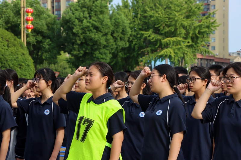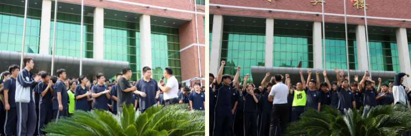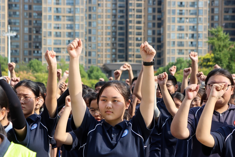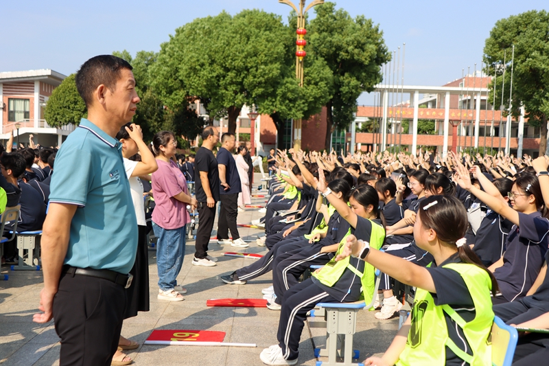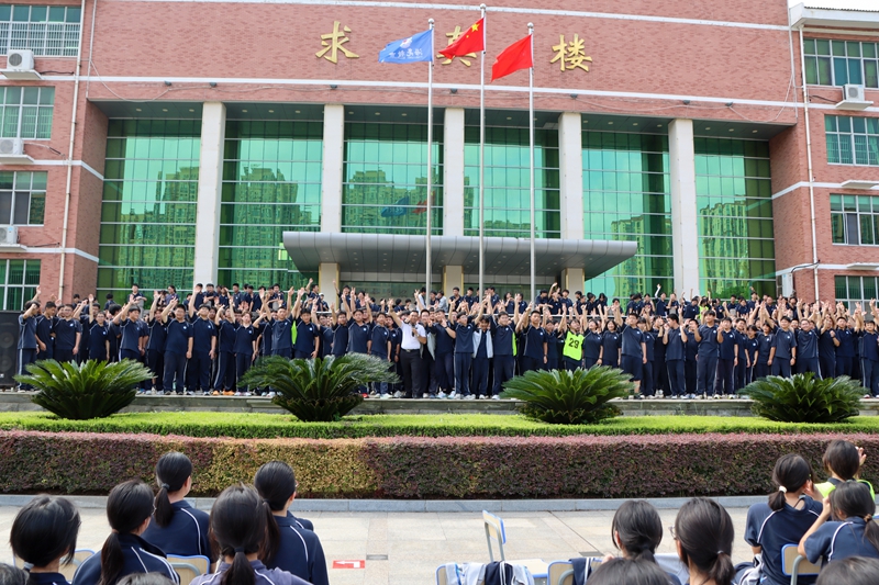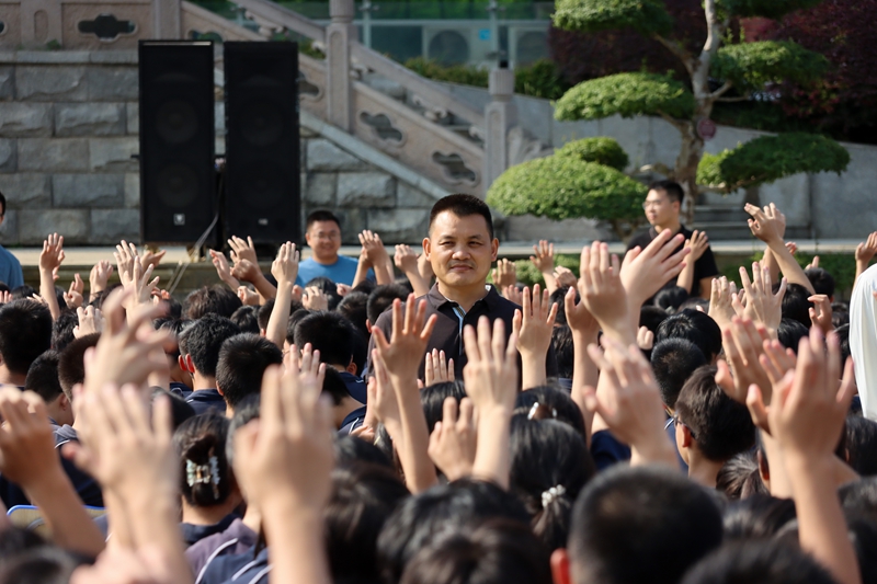 “相信自己一定会成功的请举手!”“相信高考一定圆梦的同学请举手!”在求真操场上,学子们的手臂齐刷刷举起,如林般矗立,掌声雷动。