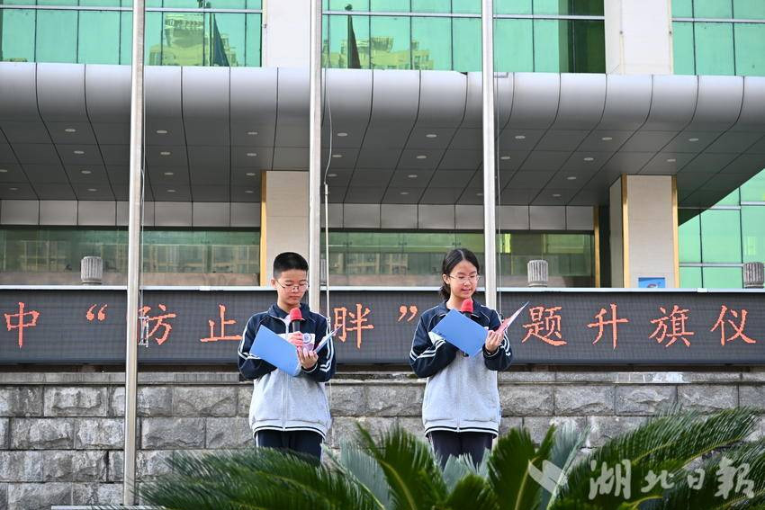 10月27日上午,仙桃一中初中部七、八年级在求真楼广场举行“防止肥胖”主题教育升旗仪式。