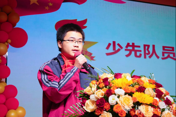 优秀少先队员代表仙源学校印越同学发表离队感言,表达对少先队组织的感恩与对未来的憧憬。