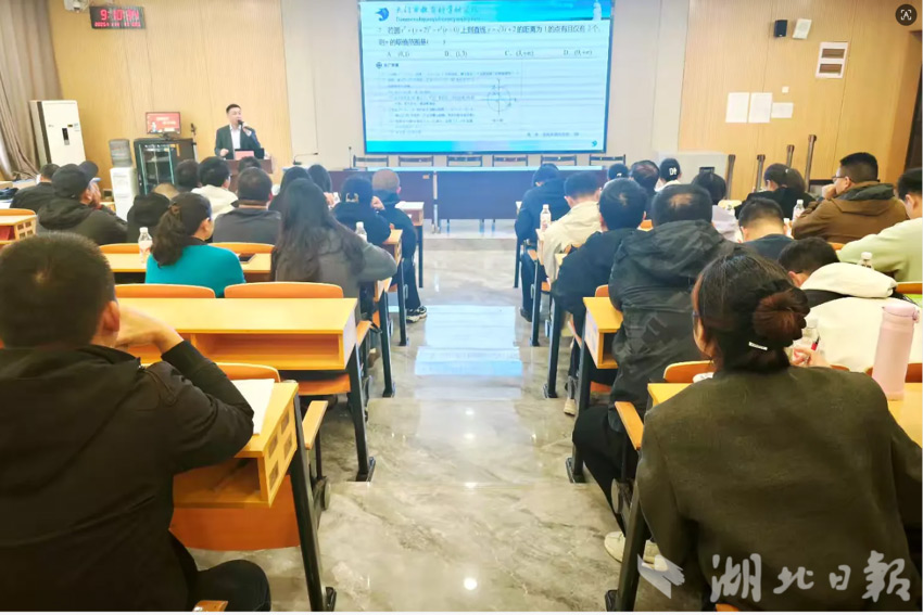 11月1日上午,天门市教育科学研究院高中数学教研员杨艳华受邀来到仙桃一中,作主题为“返璞归真,探寻本源”的数学专题讲座。本次活动由仙桃一中主办,汇聚了海亮教育“四省六校”联盟的教师代表及该校高中部全体数学教师。作为新高考改革背景下的专业引领,杨艳华教研员深入浅出剖析了当前数学教学的转型路径,强调回归教材、溯源根本的迫切性,引发与会教师的深度共鸣与热烈讨论。