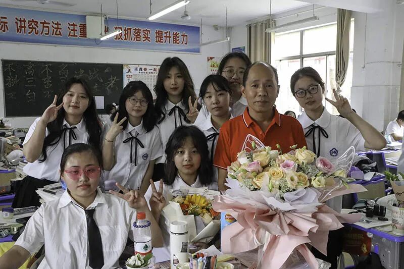 (考上北大的学生汪国璋、王子怡,考上清华的学生陈乾,毛骞回母校看望老师)