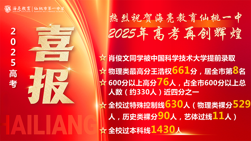 今天的仙桃一中,坚守为党育人、为国育才的初心使命,秉承优良传统,朝气蓬勃,锐意创新,开拓进取,正以追求一流的气魄、脚踏实地的行动,向着更高远的目标坚实迈进!