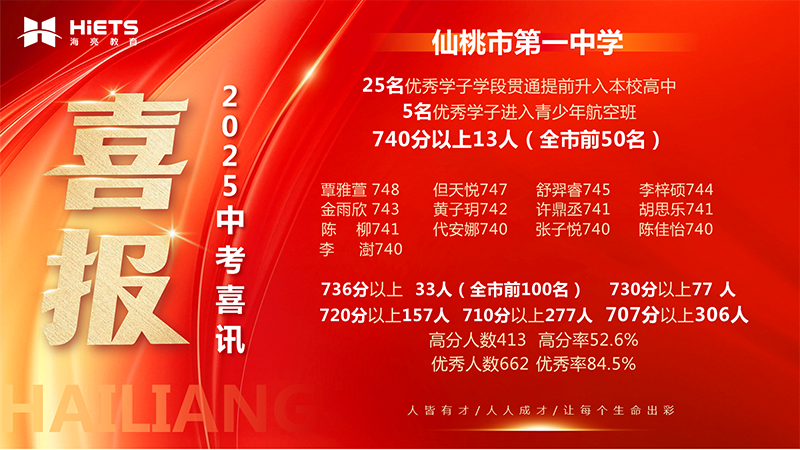 25名优秀学子学段贯通提前升入本校高中,5名优秀学子进入青少年航空班,740分以上13人(全市前50名),736分以上33人(全市前100名),730分以上77人,720分以上 157人,710分以上 277人,707分以上306人,高分人数413,高分率52.6%,优秀人数662,优秀率84.5%。