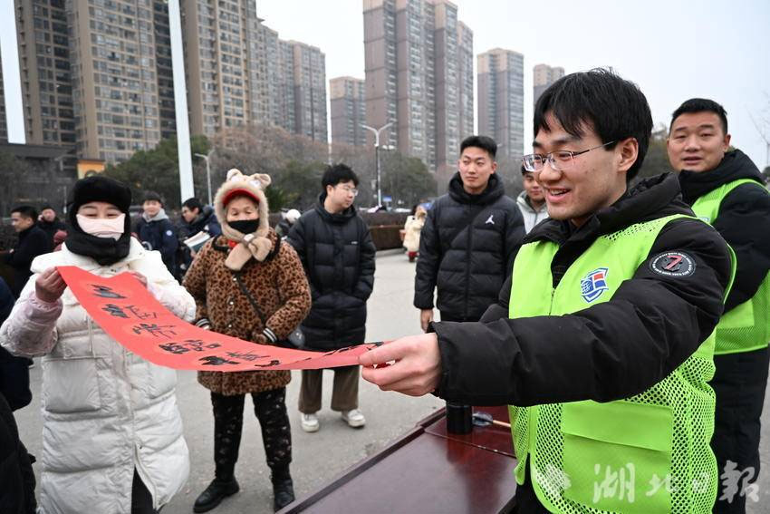 据仙桃一中高中部校长陈登章介绍,此次赠春联活动是学校“传统文化进校园”系列举措之一。朱旭老师提前两周利用业余时间书写了大量春联,既有春节迎新经典吉祥语,也有结合校园生活的原创内容。“通过书法艺术传递新年祝福,既能让家长感受到学校的人文关怀,也能让孩子们在潜移默化中亲近传统文化。”朱旭老师表示,笔墨间的温度,正是家校共育最生动的纽带。