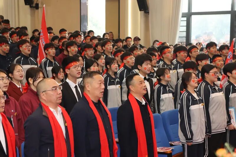 当《我们都是追梦人》的旋律响起,全场仿佛化作了歌的海洋,学子们挥舞着手中的旗帜,眼中闪烁着必胜的光芒。