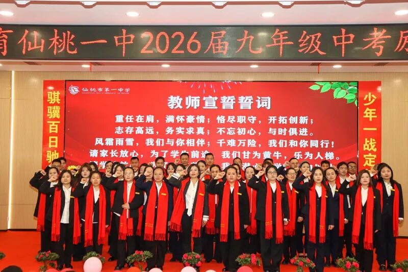 玉兰凝香吐蕊,紫薇抽芽破枝,三月的风裹着春的蓬勃,拂过仙桃一中的菁菁校园。3月12日上午,学校学术报告厅内彩带飞扬、旌旗猎猎,九年级学子们身姿挺拔、目光如炬,2026届中考励志大会在此燃情启幕,为百日冲刺吹响最嘹亮的冲锋号角。
