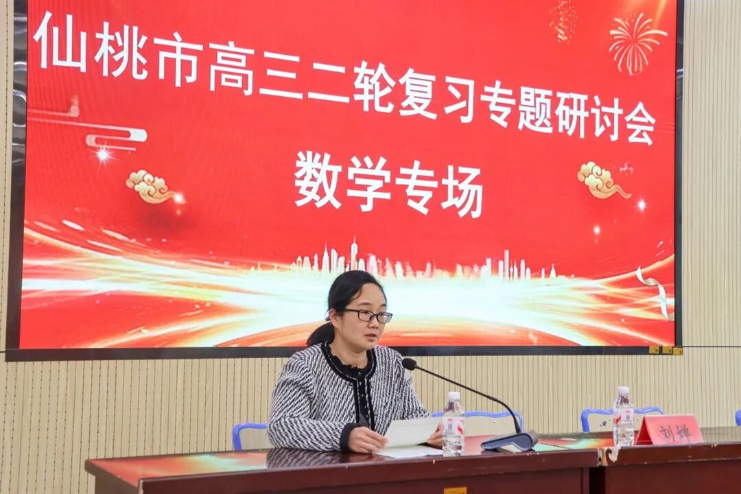 为优化高三后期复习策略,提升备考的科学性与实效性,3月30日,仙桃市高三数学、生物学科二轮备考研讨会在仙桃一中举行。会议分数学、生物两个专场进行,数学专场由仙桃一中副校长许义平主持,生物专场由仙桃一中教科室副主任刘红升主持,全市各高中学校高三备课组长及部分青年骨干教师参与了本次活动。