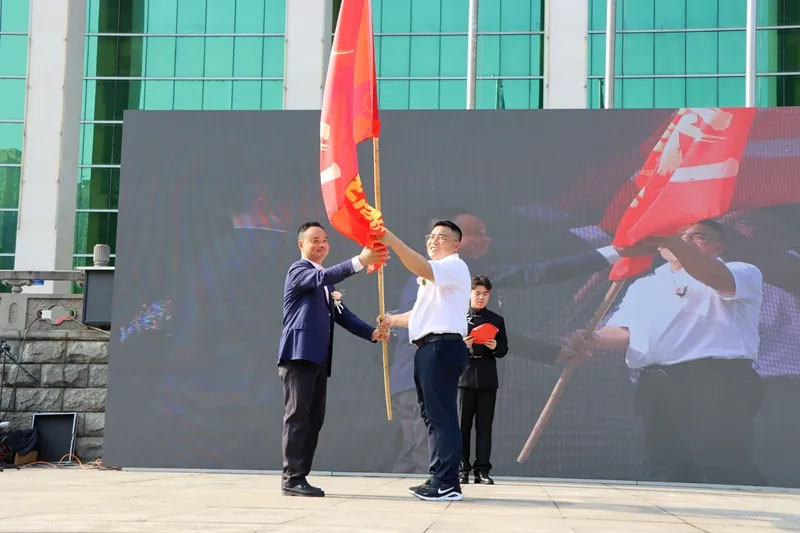 随后的授旗仪式更是将气氛推向高潮:仙桃一中党委书记、校长王奕缓步上前,将象征一中精神的旗帜郑重递到高中部副校长雷玉刚手中。