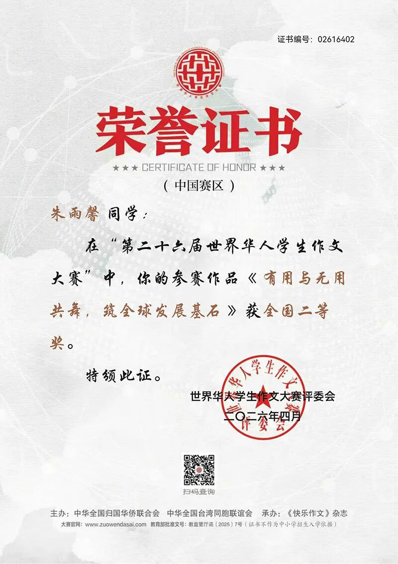 大赛主题兼具深度与难度,对学生的写作素养、创新思维和文化认知提出了极高要求。我校学子能在激烈角逐中脱颖而出,实属不易。