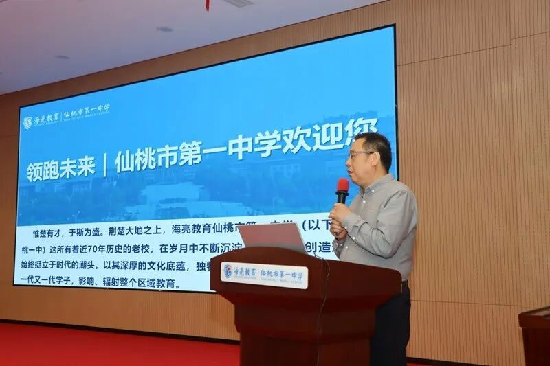 4月8日上午,仙桃一中副校长姜志祥介绍了学校的历史沿革、办学概况与主要荣誉,强调仙桃一中坚守“为党育人、为国育才”的初心使命,向着“更美、更强、更优”的目标坚实迈进。