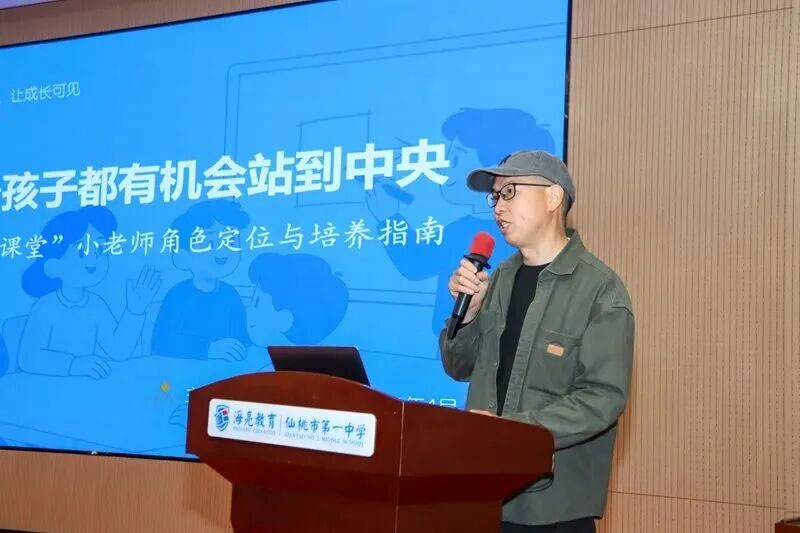 4月8日上午,仙桃一中全体教师与来访专家、教师共聚一堂,开展“创思课堂”通识培训。海亮教育管理中心赵小华部长解读创思课堂的核心理念,陈俊杰老师讲解了如何培养创思课堂实践中的班组文化,叶世标老师分享创思课堂中“小老师”的培养经验。通识培训后,分学科进行专题培训:英语赵小华、语文叶世标、数学陈俊杰、物理吕华荣分别讲解创思课堂在学科实践中的实施路径。参训教师纷纷表示将把所学带回课堂,让理念落地生根。