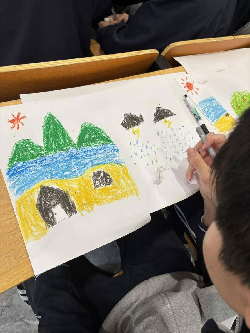 在思考与创作中,学生们顿悟:情绪本无优劣之分,唯有接纳所有感受,才能编织出完整而丰盈的自我。一幅幅交织的情绪画作,不仅成为艺术表达,更化作心理疗愈的桥梁。